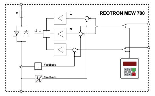 I regolatori di potenza REOTRON sono regolatori a tiristore che funzionano in base al principio di parzializzazione di fase o treni d’onda.